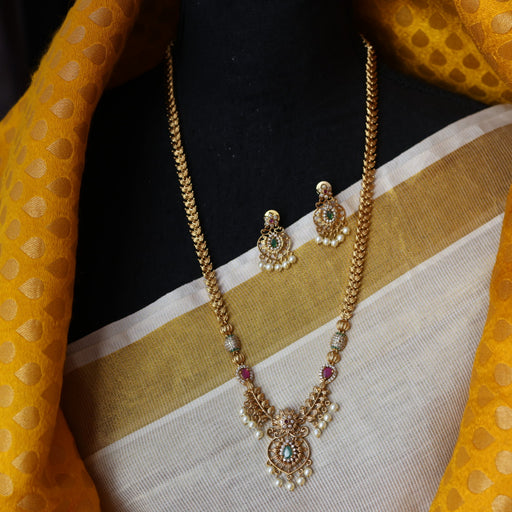 View full detailsAntique ruby white stone long necklace and earrings PAD2780