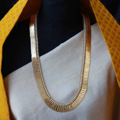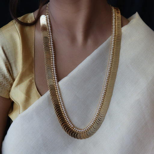 View full detailsHeritage gold plated white stone padakam long necklace HP089
