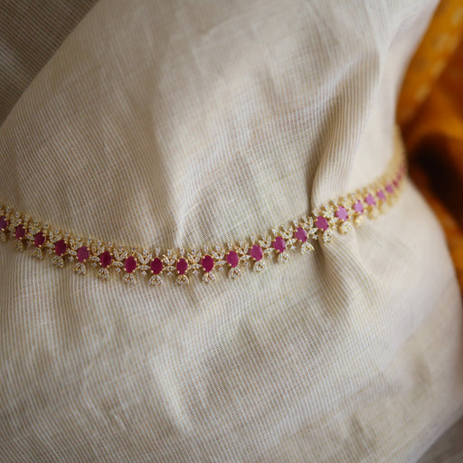 View full detailsHeritage gold ruby green and white stone waistchain HW100569