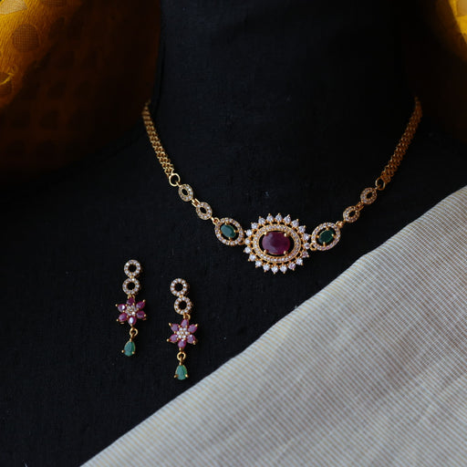 View full detailsHeritage simple ruby white stone choker necklace with earrings CCB1461