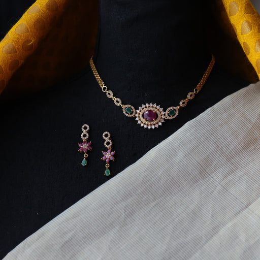 View full detailsHeritage simple ruby white stone choker necklace with earrings CCB1462