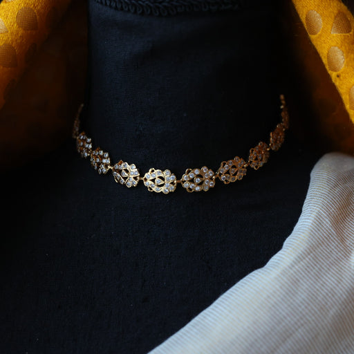 View full detailsHeritage gold plated white stone mango design choker necklace H811