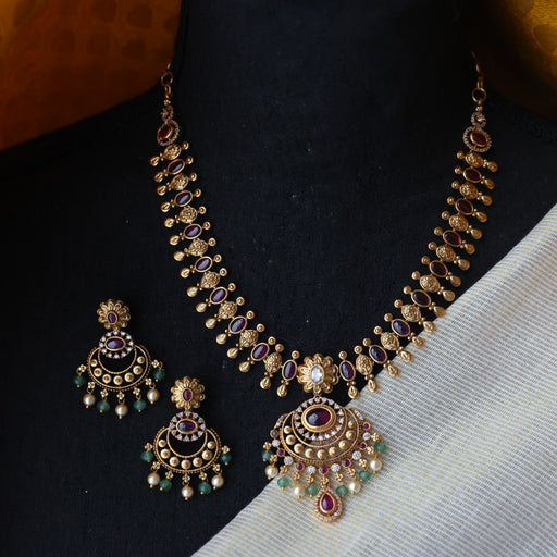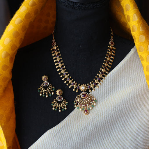 View full detailsAntique multi stone pearl short necklace with earrings 167568