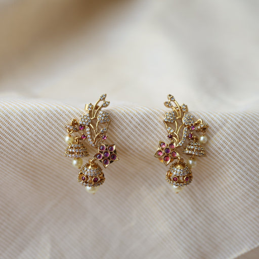 View full detailsAntique ruby white stone jumka earrings AJ312