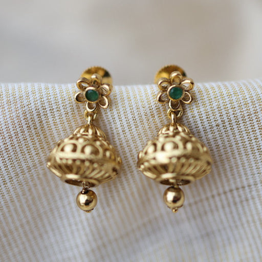 View full detailsAntique gold green stone traditional jumka earrings AJ416