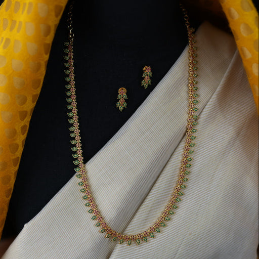 View full detailsHeritage gold plated ruby green stone mango long necklace HL754