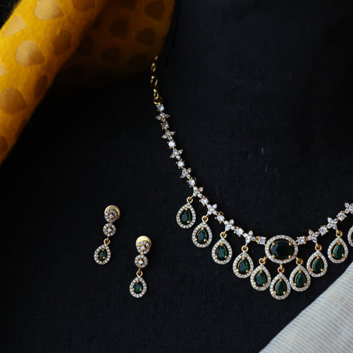 Antique green stone short necklace and earrings SS10876