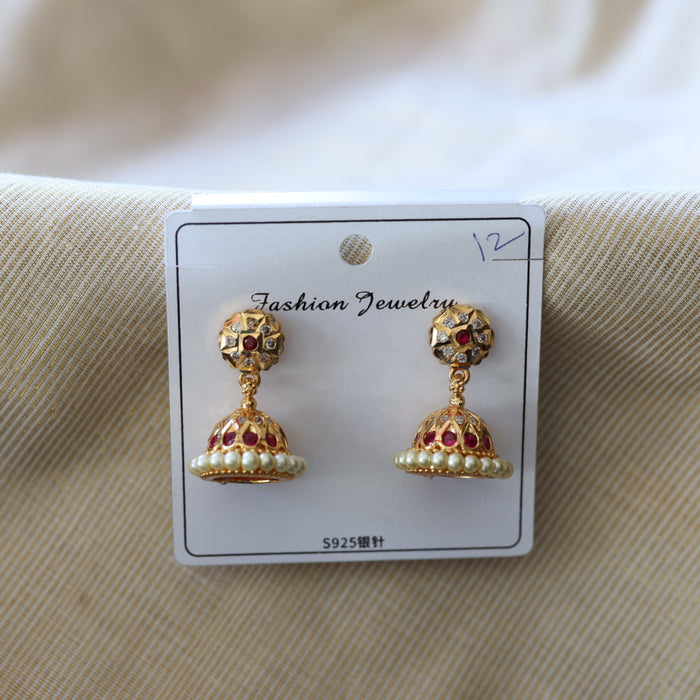 Heritage gold plated ruby white stone jumka earrings HJ047