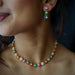 Heritage gold plated navarathna stone short necklace with earrings H1321