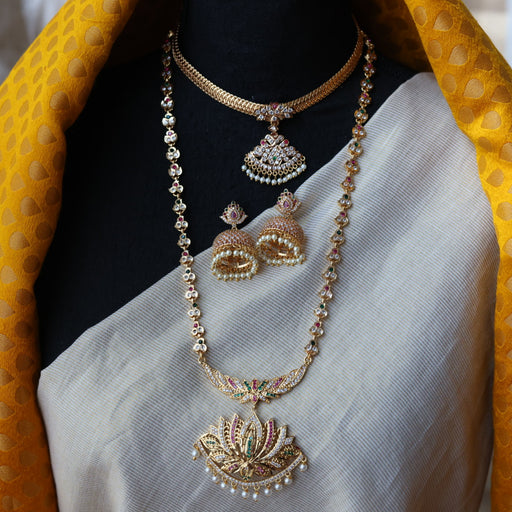 View full detailsHeritage gold plated short and long padakam set necklace HPS2053