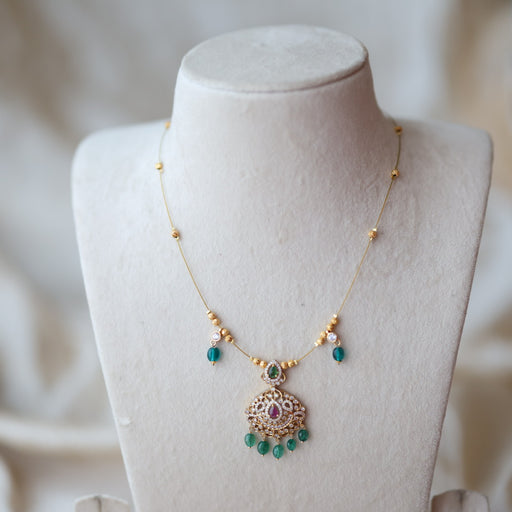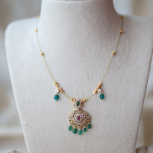 Antique green bead invisible short necklace IN411