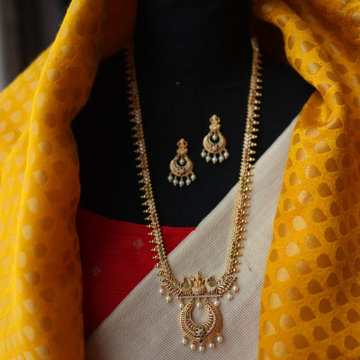 View full detailsHeritage gold plated padakam long necklace with earrings HP39