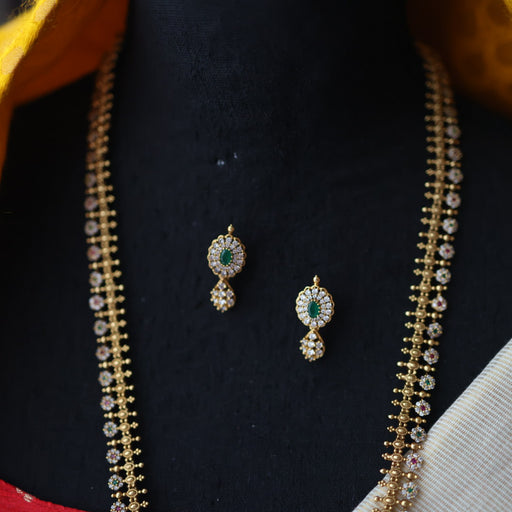 View full detailsHeritage gold plated ruby white stone medium padakam long necklace 982455
