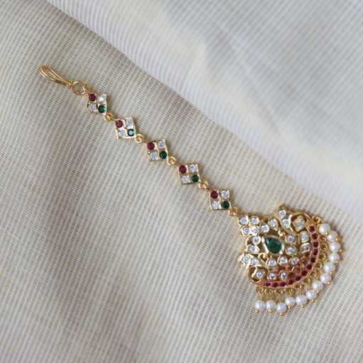 Antique ruby green stone three side tikka design tikka AT0018