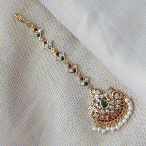 Heritage ruby green stone three side tikka design tikka AT022