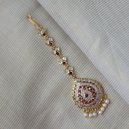 Heritage gold plated ruby and white stone tikka TH754