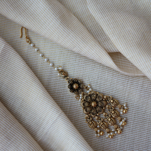 About the Jewelry This vintage looking maang tikka resembles is perfect choice for weddings and festivals. This antique plated maang tikka is handc...