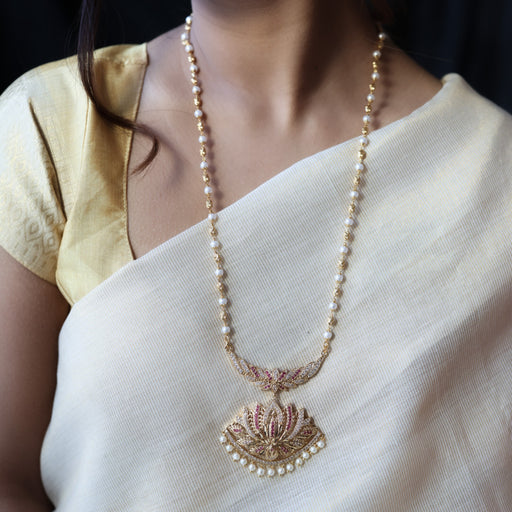 View full detailsHeritage gold plated padakam pearl long necklace HP324