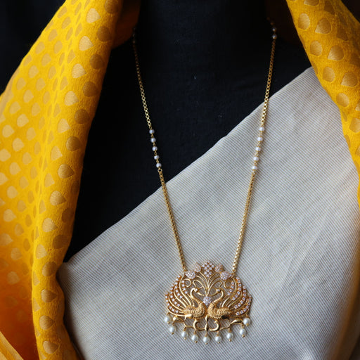 View full detailsHeritage gold plated white stone long padakam necklace HP2233