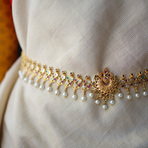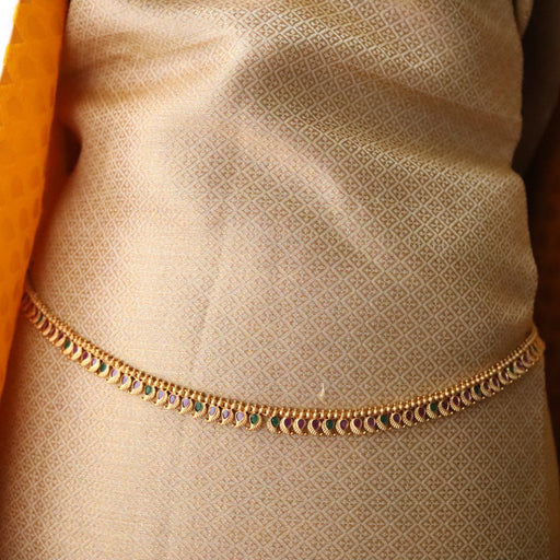 View full detailsAntique gold white ruby green stone mango waistchain AW4574