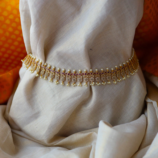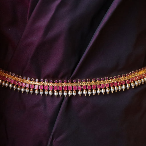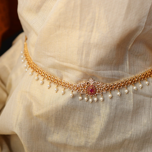 View full detailsHeritage gold plated ruby white stone and pearl waistchain AW1094