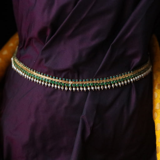 Antique temple design green bead waistchain AW55677