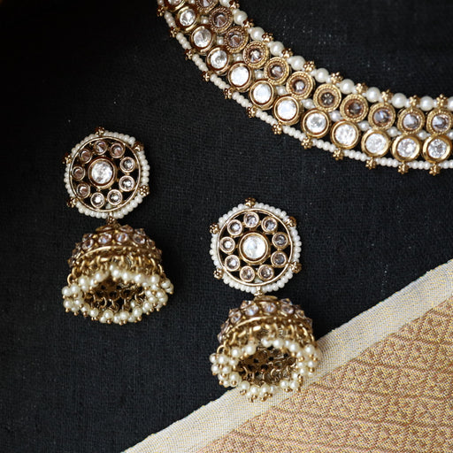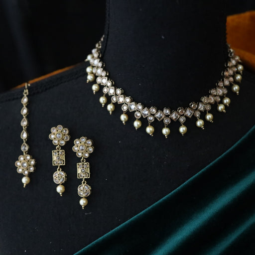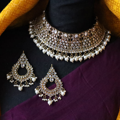 View full detailsTrendy white stone short necklace with earrings and tikka TW0012