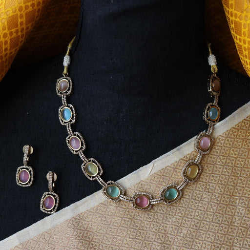 View full detailsTrendy multi stone short necklace and earrings TM121