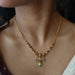 Antique ruby green pearl simple short necklace with earrings TT02057