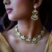 Trendy white stone kundan stone green bead choker necklace with earrings TG432